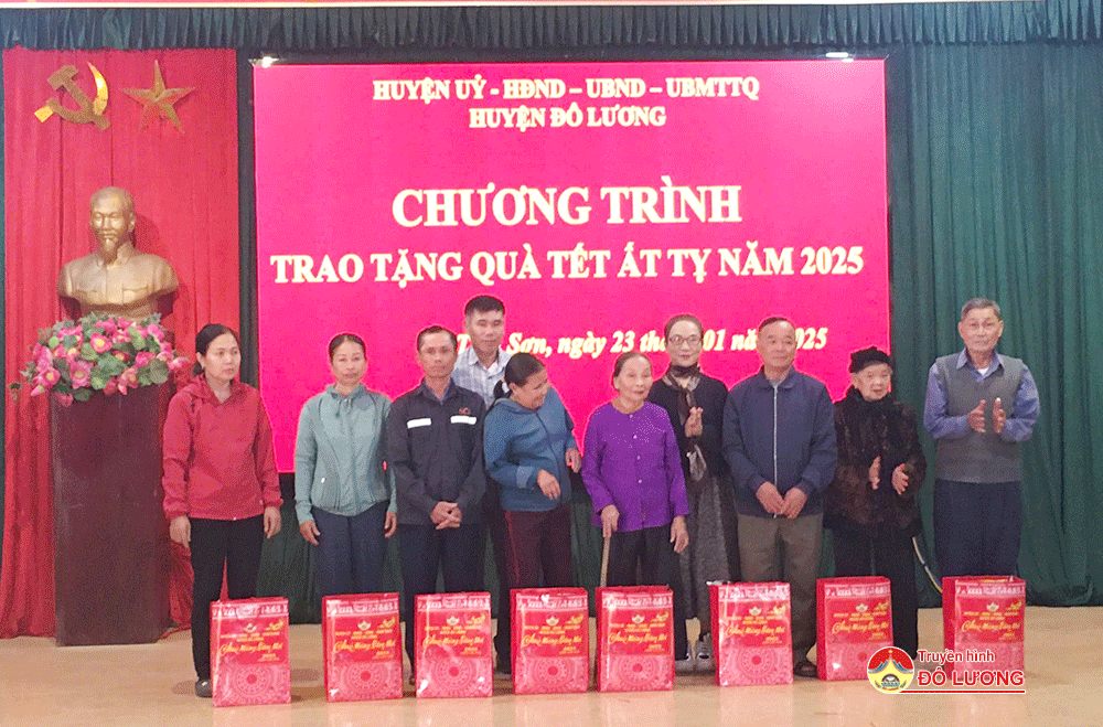 Đợt này Huyện ủy, HĐND, UBND, UBMTTQ huyện Đô Lương đã trao tặng 25 suất quà Tết, mỗi suất trị giá 1,3 triệu đồng gồm 1 triệu đồng tiền mặt và quà trị giá 300 ngàn đồng. Trong đó, xã Thái Sơn 12 suất và xã Tân Sơn 13 suất. Đây là những món quà vô cùng ý nghĩa thể hiện sự quan tâm, động viên kịp thời của Huyện ủy, HĐND, UBND, UBMTTQ huyện Đô Lương giúp các gia đình vượt qua khó khăn trong cuộc sống, đón Tết Ất Tỵ thực sự đủ đầy hơn.