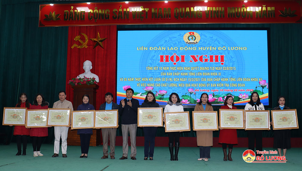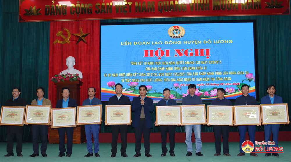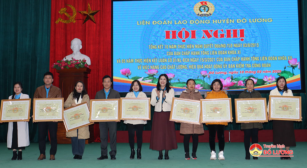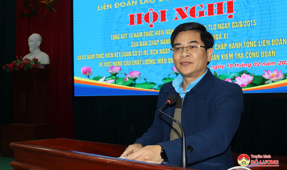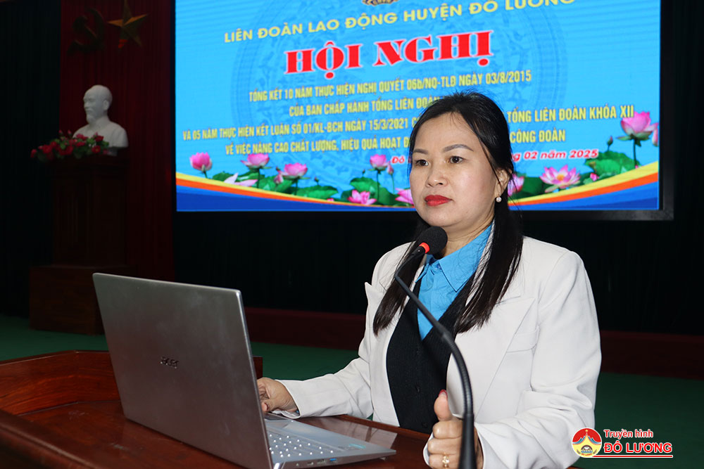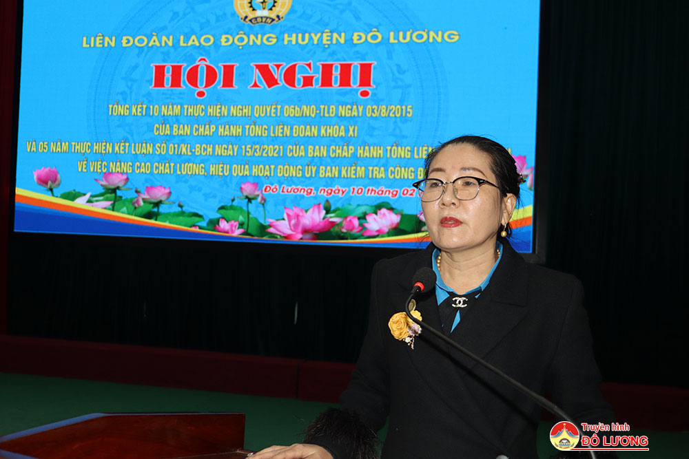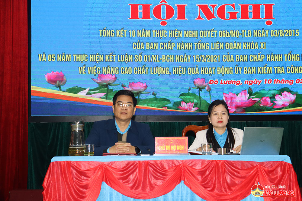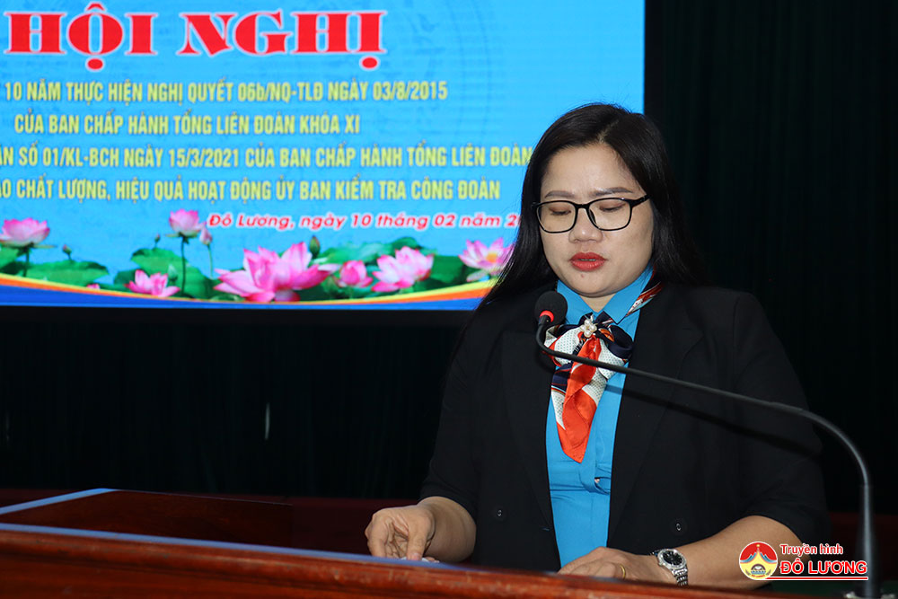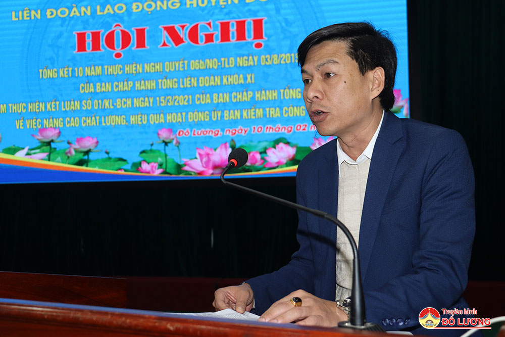 Sáng10/2, Liên đoàn lao động huyện đã tổ chức tổng kết 10 năm thực hiện Nghị Quyết 06 b /NQ-TLĐ ngày 03/8/2015 của Ban Chấp hành Tổng Liên đoàn khóa XI và 05 năm thực hiện Kết luận số 01/KL-BCH ngày 15/3/2021 của Ban Chấp hành Tổng Liên đoàn khóa XII về việc nâng cao chất lượng, hiệu quả hoạt động ủy ban kiểm tra công đoàn. Tham dự hội nghị có đồng chí Nguyễn Thị Thu Nhi- Phó chủ tịch Thường trực Liên đoàn lao động tỉnh và các đồng chí trong đoàn công tác. Phía huyện có đồng chí Tăng Quốc Cường- Phó trưởng Ban Dân vận Huyện ủy. Đồng chí Nguyễn Thị Hương Thủy- Chủ tịch Liên đoàn lao động huyện và đồng chí Lê Văn Lai- Phó chủ tịch LĐLD huyện chủ trì hội nghị.