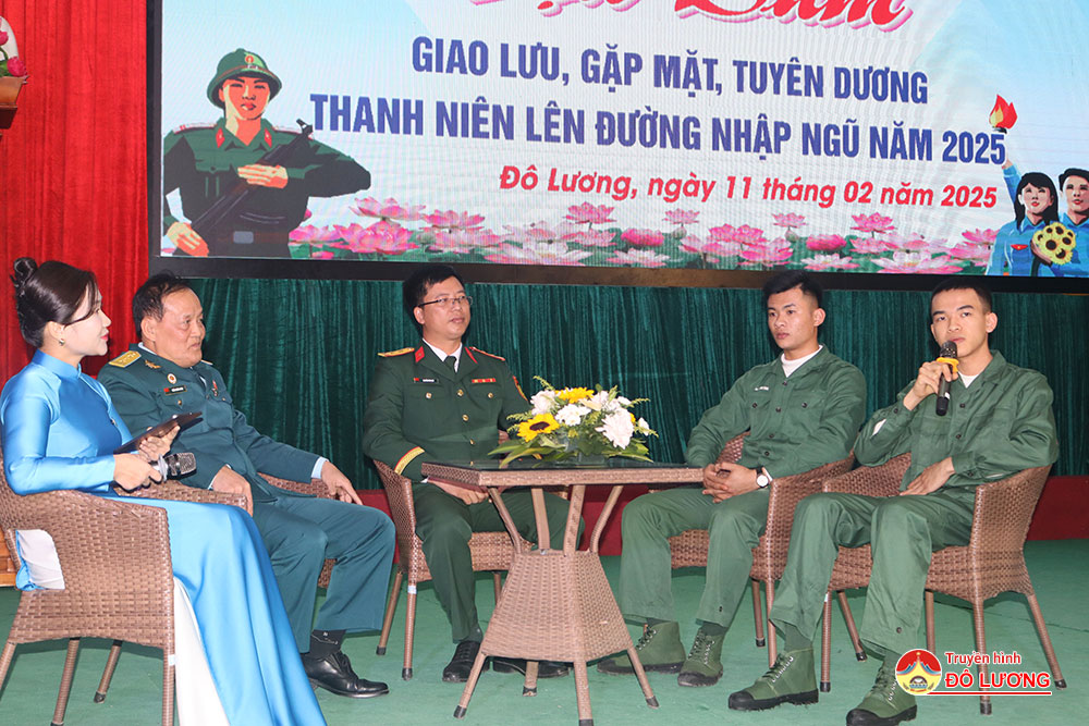 Sáng 11/2, Ban chỉ huy quân sự huyện phối hợp với Huyện đoàn Đô Lương tổ chức chương trình Tọa đàm, giao lưu, gặp mặt, tuyên dương thanh niên lên đường nhập ngũ năm 2025. Tham dự buổi lễ có các đồng chí: Bùi Duy Đông – Tỉnh ủy viên- Bí thư Huyện ủy; Nguyễn Tất Hoài Hiệp- Phó Bí thư Thường trực Huyện ủy – Chủ tịch HĐND huyện; Các đồng chí trong Ban Thường vụ Huyện ủy. Đại diện lãnh đạo các ban, ngành, phòng, đoàn thể cấp cấp huyện, lãnh đạo Sư đoàn 324, Tỉnh đoàn Nghệ An, Chỉ huy trưởng BCHQS, Bí thư Đoàn 32 xã, thị trấn.