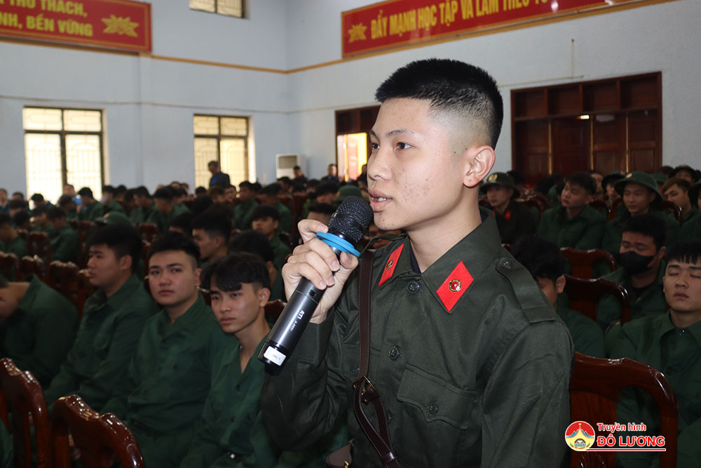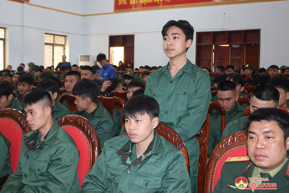 Tại buổi gặp mặt, các tân binh đã giao lưu với đại diện lãnh đạo Ban chỉ huy quân sự huyện, Cựu chiến binh và những thanh niên vừa hoàn thành nghĩa vụ quân sự về truyền thống vẻ vang, hào hùng của Quân đội nhân dân Việt Nam anh hùng; những trải nghiệm trong quân ngũ, kinh nghiệm rèn luyện, học tập, chiến đấu, phấn đấu trưởng thành trong quân ngũ.