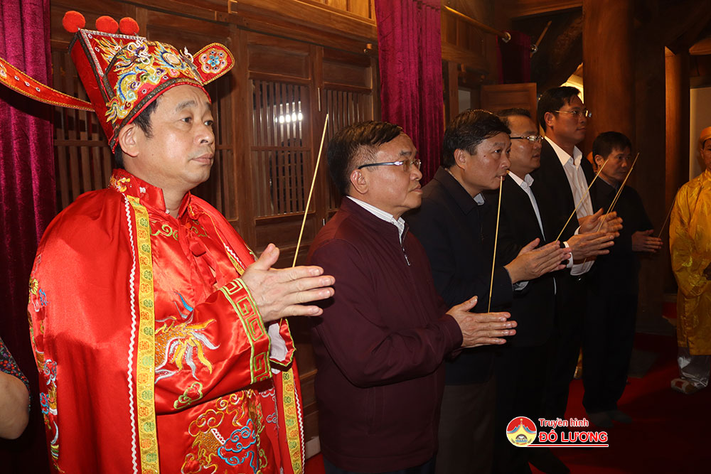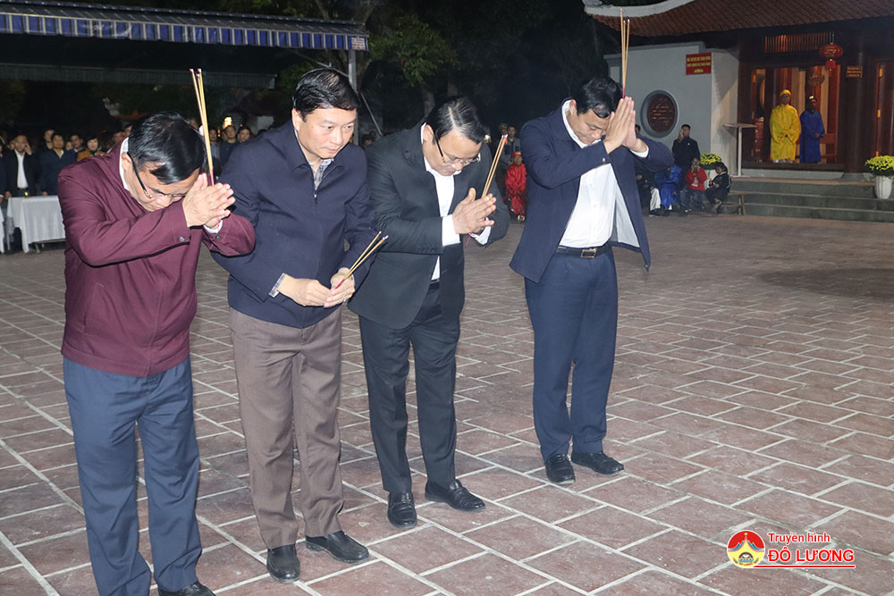 Tại buổi lễ, các đồng chí lãnh đạo tỉnh và huyện đã dâng hương, dâng hoa, tiến lễ bày tỏ lòng biết ơn sâu sắc đối với Uy Minh Vương – Lý Nhật Quang, Đông Kinh Vương, Dực Thánh Vương và các vị nhân thần được thờ tại Đền Quả Sơn, những người có công lớn trong việc đánh đuổi giặc ngoại xâm, giữ yên bờ cõi, mở mang phát triển kinh tế, gây dựng vùng đất Hoan Châu phát triển phồn thịnh cách đây gần 1.000 năm.