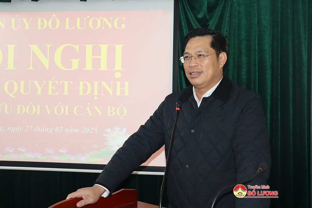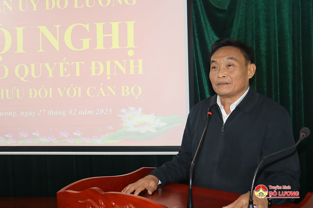 Sáng 27/2, Huyện ủy Đô Lương đã tổ chức trao Quyết định nghỉ hưu cho đồng chí Lê Đình Lĩnh. Theo Quyết định số 2276 – QĐ/HU của Huyện ủy, đồng chí Lê Đình Lĩnh sinh năm 1966 – Phó Trưởng Tuyên giáo và Dân vận Huyện ủy Đô Lương được nghỉ hưu trước tuổi theo Nghị định 178/ 2024 của Chính Phủ kể từ ngày 1/3/2025.