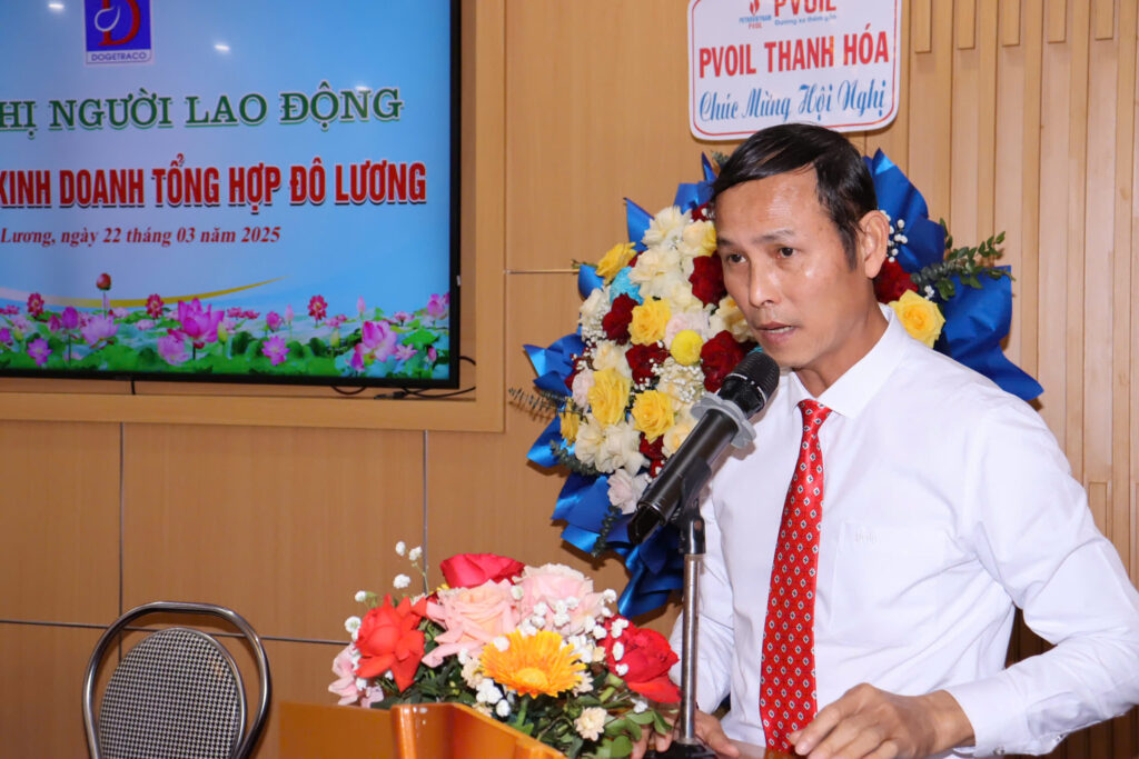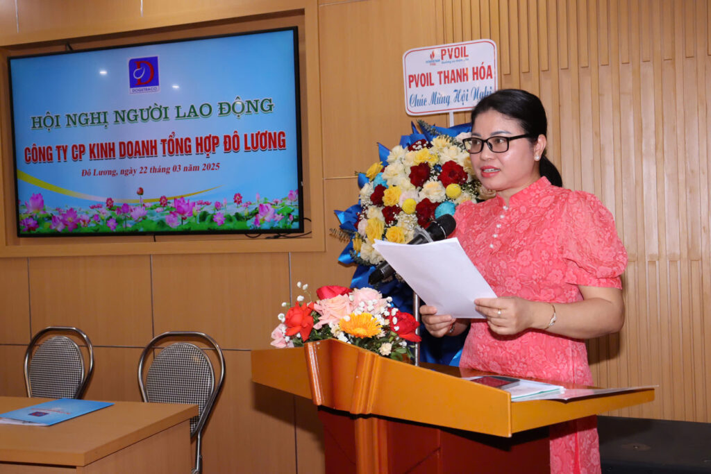 Sáng ngày 22/3, Công ty Cổ phần kinh doanh tổng hợp Đô Lương đã tổ chức Hội nghị người lao động năm 2025. Về dự có đồng chí Phạm Thanh Tùng – Phó Chủ tịch Công đoàn cơ quan UBND tỉnh- Nguyên Chủ tịch Công đoàn ngành Công Thương Nghệ An. Phan Thị Mỹ Hạnh-Nguyên Phó chủ tịch Công đoàn ngành Công Thương Nghệ An, đồng chí Thái Thị Kim Oanh- Ủy viên Ban Thường vụ- LĐLĐ huyện Đô Lương; đại diện 10 Đại lý xăng dầu của Công ty.
