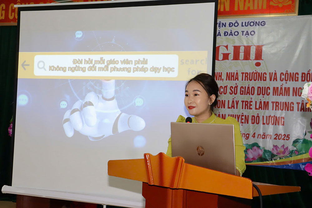 Chiều 28/4, Phòng GD &ĐT huyện Đô Lương tổ chức Hội nghị tổng kết mô hình “Phối hợp giữa gia đình, nhà trường và cộng đồng trong chăm sóc, giáo dục trẻ tại các cơ sở giáo dục mầm non và chuyên đề “Xây dựng trường mầm non lấy trẻ làm trung tâm giai đoạn 2020-2025” trên địa bàn huyện Đô Lương. Tham dự có đồng chí Nguyễn Tất Tây- Trưởng Phòng GD &ĐT huyện, lãnh đạo một số ngành, các tổ chức chính trị xã hội cùng các trường mầm non công lập và tư thục trên địa bàn huyện.