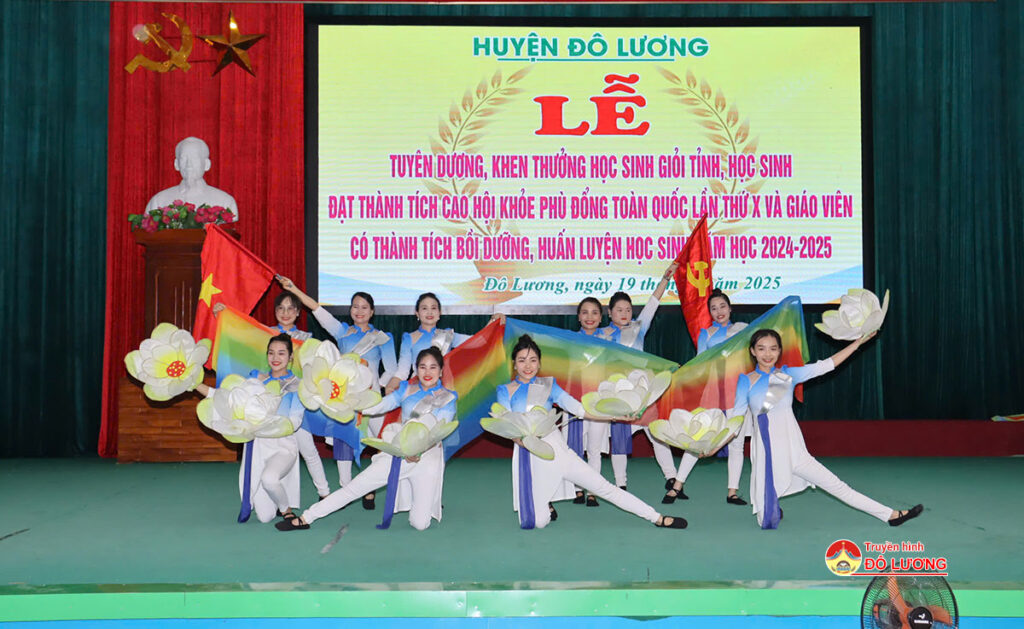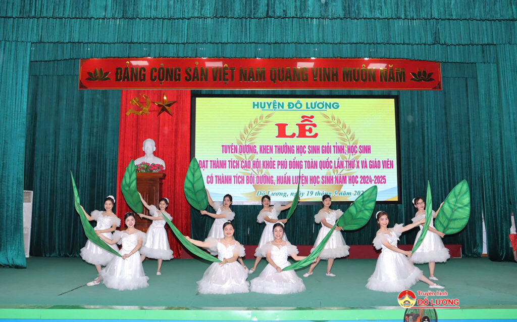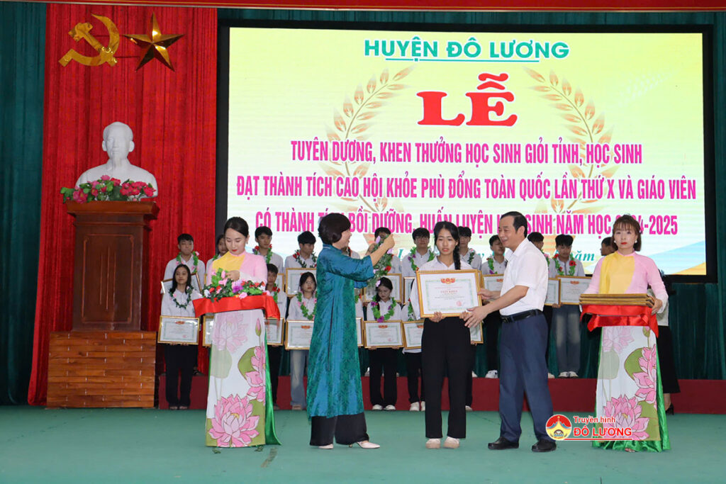 Nhân dịp kỉ niệm 135 năm ngày sinh Chủ tịch Hồ Chí Minh kính yêu 19/5/1890 – 19/5/2025, sáng ngày 19/5, UBND huyện Đô Lương tổ chức Lễ tuyên dương, khen thưởng học sinh giỏi tỉnh, học sinh đạt thành tích cao Hội khoẻ Phù Đổng toàn quốc lần thứ X và giáo viên có thành tích bồi dưỡng, huấn luyện học sinh năm học 2024 – 2025. Dự buổi lễ, có đồng chí Nguyễn Tất Hoài Hiệp – Phó Bí thư Thường trực Huyện ủy, Chủ tịch HĐND huyện; Hoàng Văn Hiệp – Phó Bí thư Huyện ủy, Chủ tịch UBND huyện; các đồng chí trong Ban Thường vụ Huyện ủy; đại diện lãnh đạo các phòng, ban, ngành cấp huyện; Hiệu trưởng các trường học trên địa bàn cùng các thầy cô giáo, các em học sinh có thành tích cao được khen thưởng.