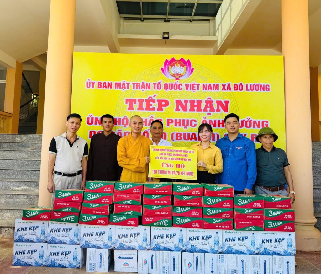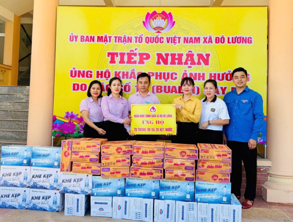 Ngày 02/10/2025, Ủy ban MTTQ Việt Nam xã Đô Lương đã trực tiếp đến thăm hỏi, động viên và trao tặng 160 thùng nước uống, 210 thùng mì tôm cho các hộ dân trên địa bàn xã bị ảnh hưởng nặng nề bởi bão số 10 (bão Bualoi).