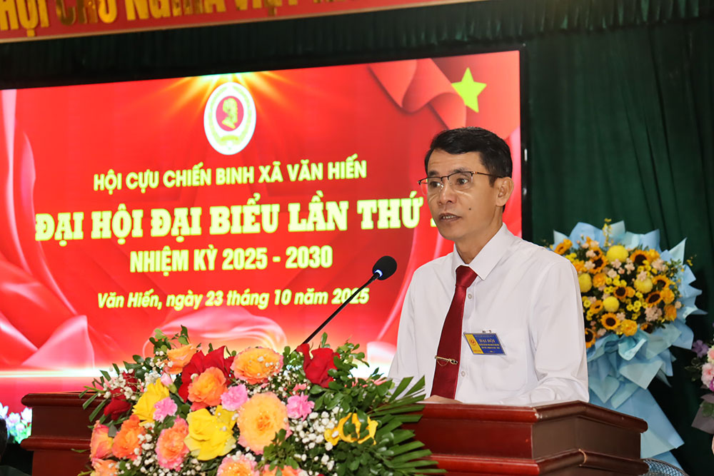 Sáng ngày 23/10, Hội Cựu Chiến binh xã Văn Hiến đã tổ chức Đại hội Đại biểu lần thứ I, nhiệm kỳ 2025–2030. Tham dự Đại hội có Đại tá Nguyễn Duy Cần – Phó chủ tịch Hội CCB tỉnh Nghệ An. Về phía xã Văn Hiến có đồng chí Nguyễn Tất Hoài Hiệp – Bí thư Đảng ủy, Chủ tịch HĐND xã; đồng chí Nguyễn Trọng Hợi – Phó Bí thư Thường trực Đảng ủy; đc Trần Văn Hiến – Chủ tịch UBND xã và các đồng chí Ủy viên Ban Thường vụ, đại diện các ban, ngành đoàn thể xã, cán bộ Hội CCB huyện qua các thời kỳ, đại diện Hội cựu Công an Nhân dân xã, Hội CCB các xã lân cận cùng các đại biểu đại diện hơn 1.700 hội viên của 33 chi hội trong toàn xã.