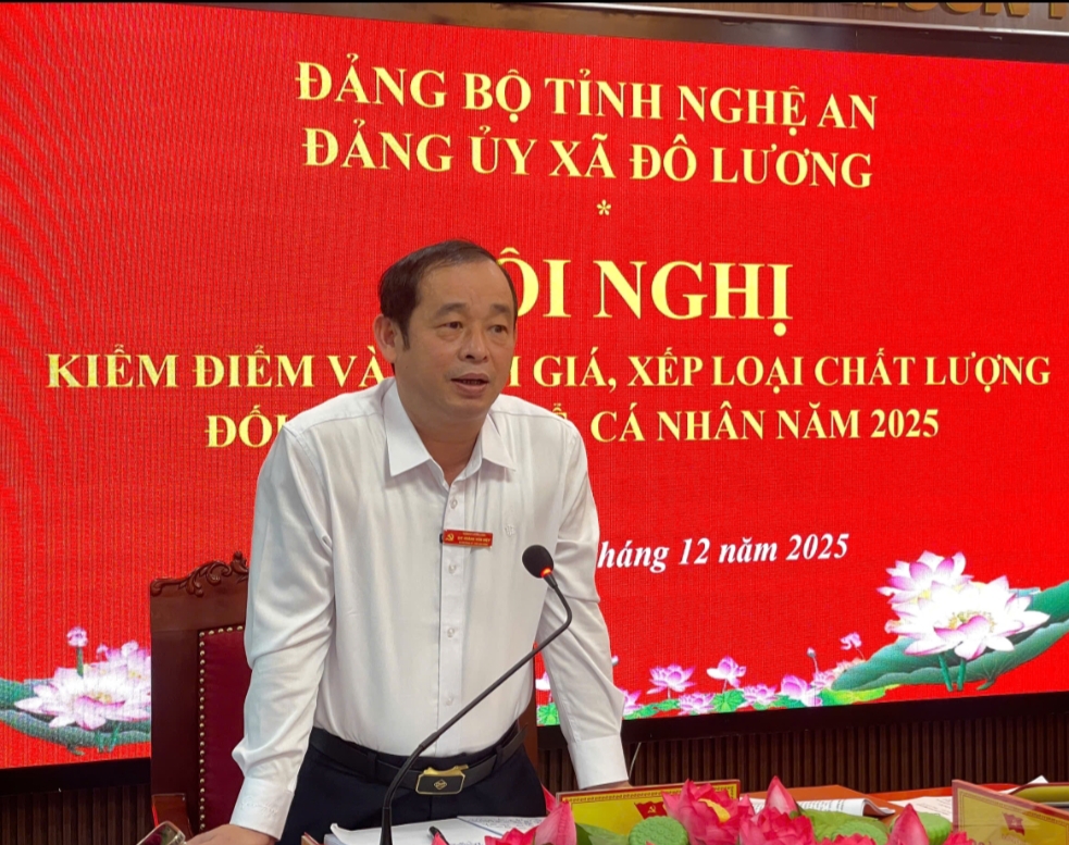 Phát biểu tại hội nghị, đồng chí Lê Trường Giang- Tỉnh ủy viên, Phó trưởng Ban Tổ chức Tỉnh ủy ghi nhận tinh thần nghiêm túc, trách nhiệm của Ban Thường vụ Đảng ủy xã Đô Lương trong công tác kiểm điểm và đánh giá, xếp loại chất lượng. Đồng chí nhấn mạnh việc kiểm điểm hằng năm không chỉ là nhiệm vụ thường xuyên mà còn là dịp quan trọng để mỗi tập thể, cá nhân nhìn lại mình, đánh giá đúng thực chất kết quả công tác, kịp thời chấn chỉnh những tồn tại và đề ra giải pháp nâng cao hiệu quả lãnh đạo, chỉ đạo. Đồng chí đề nghị Ban Thường vụ Đảng ủy xã Đô Lương tiếp tục phát huy tinh thần đoàn kết, thống nhất; tăng cường trách nhiệm nêu gương; bám sát nhiệm vụ chính trị, nhất là các chương trình, mục tiêu phát triển kinh tế – xã hội của địa phương. Đồng thời, từng đồng chí trong Ban Thường vụ cần tiếp tục nâng cao năng lực, đổi mới phương pháp công tác, giữ vững nguyên tắc tập trung dân chủ và thực hiện tốt tự phê bình, phê bình để xây dựng tổ chức đảng ngày càng đoàn kết, trong sạch vững mạnh.