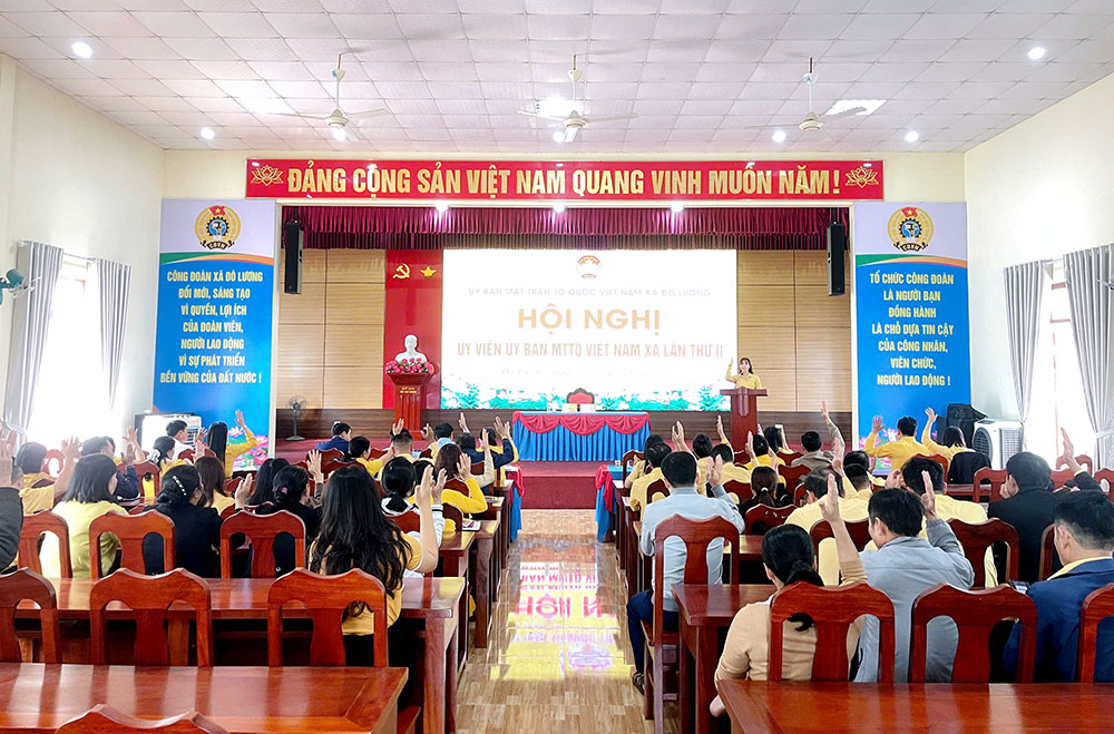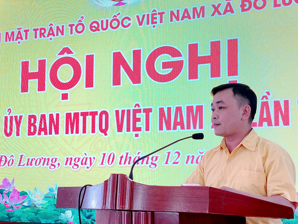 Tại Hội nghị, Ban Thường trực Ủy ban MTTQ Việt Nam xã Đô Lương đã trình bày Tờ trình nhân sự, đồng thời tiến hành các bước hiệp thương theo đúng quy trình, quy định. Với tinh thần dân chủ – đoàn kết – trách nhiệm, các đại biểu tham gia hội nghị đã thống nhất hiệp thương, cử bổ sung ông Bùi Đăng Quý sinh năm 1973 là Chủ tịch Hội Cựu chiến binh xã Đô Lương, giữ chức danh Phó Chủ tịch Ủy ban MTTQ Việt Nam xã nhiệm kỳ 2025 – 2030.