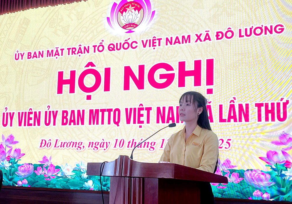 Chiều ngày 10/12/2025, Ủy ban MTTQ xã Đô Lương đã tổ chức Hội nghị Ủy viên Ủy ban MTTQ xã lần thứ hai để xem xét, cử thay thế và bổ sung chức danh Ủy viên Ủy ban MTTQ Việt Nam xã, Phó Chủ tịch Ủy ban MTTQ Việt Nam xã nhiệm kỳ 2025 – 2030.