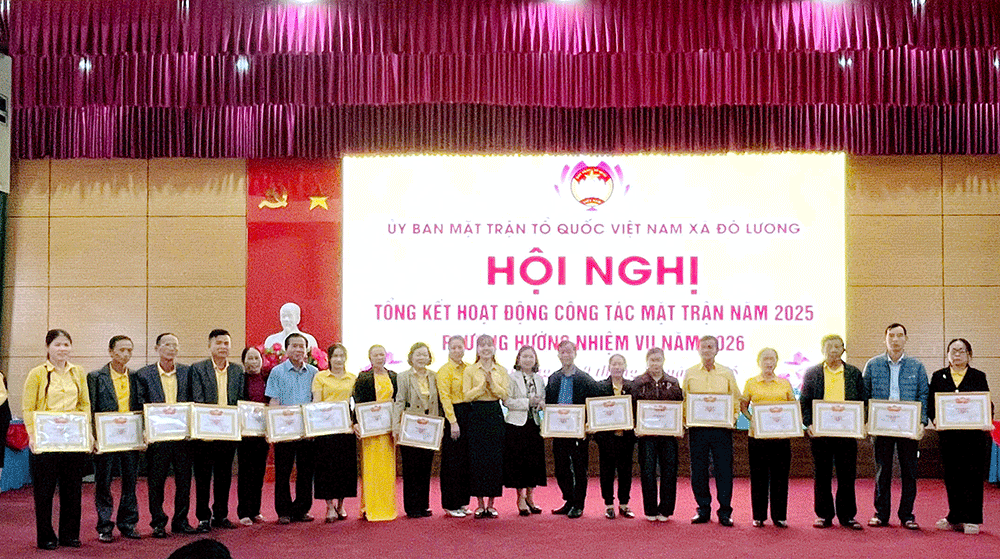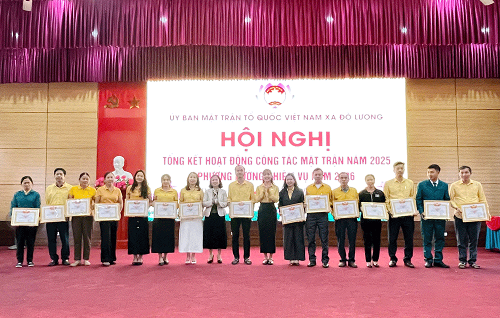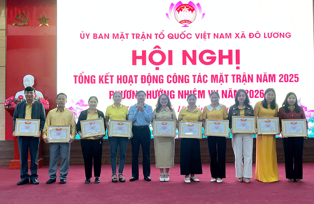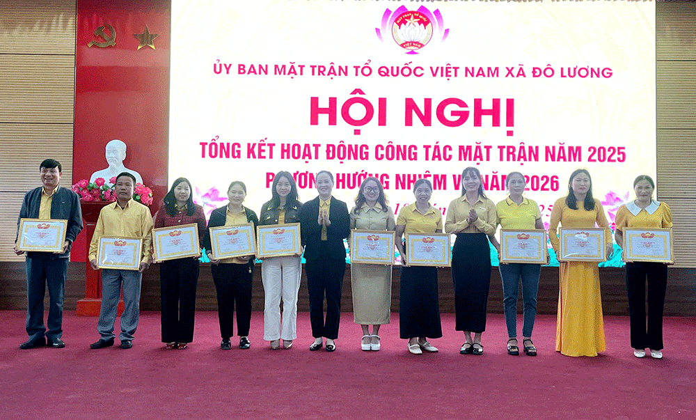 Nhân dịp này, Uỷ ban MTTQ Việt Nam xã đã tặng giấy khen cho 10 tập thể, 10 cá nhân vì đã có thành tích xuất sắc trong công tác Mặt trận năm 2025, 15 cá nhân có thành tích xuất sắc trong công tác nhân đạo, từ thiện năm 2025 và 24 cá nhân được suy tôn từ các cơ sở xóm trong toàn xã.