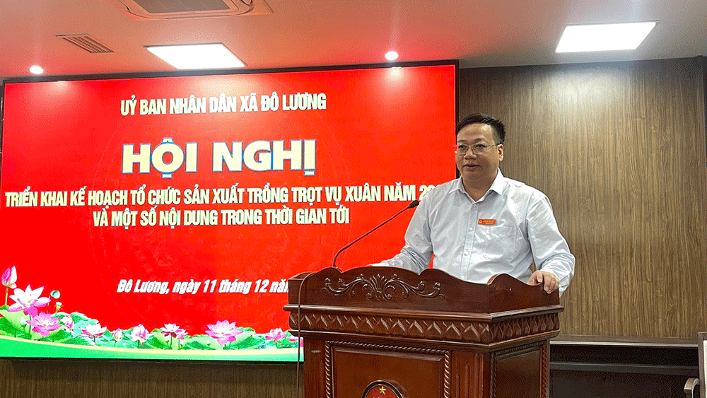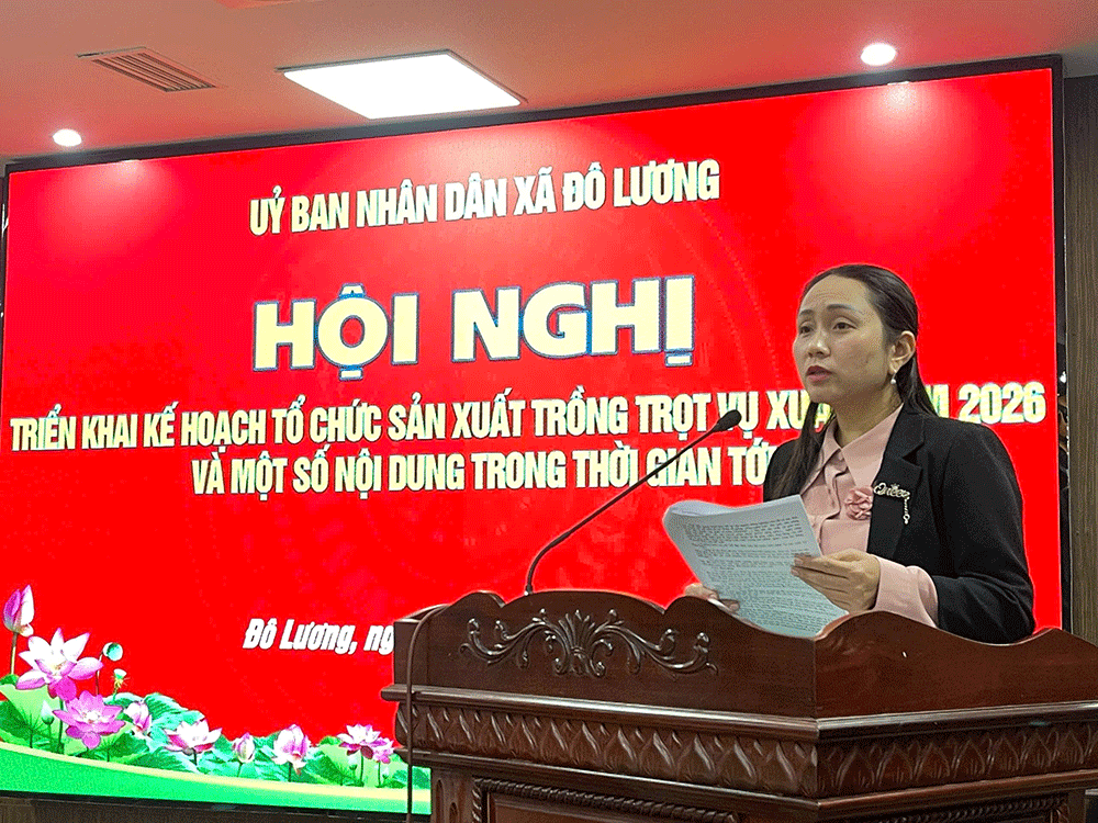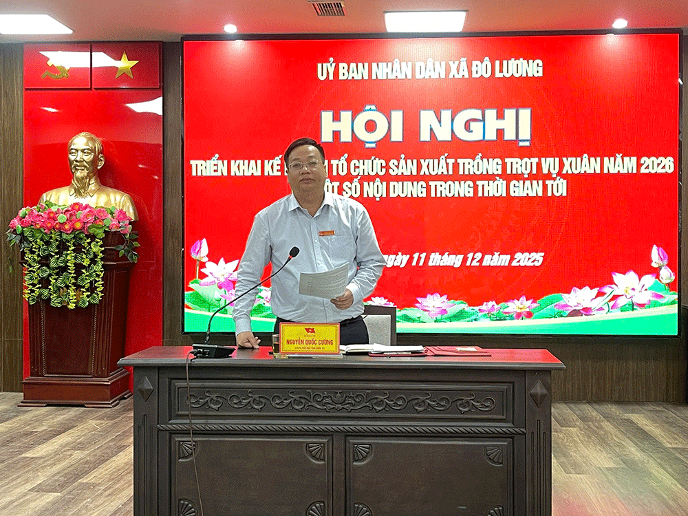 Chiều ngày 11/12, dưới sự chủ trì của đồng chí Phó Chủ tịch UBND Nguyễn Quốc Cường xã Đô Lương đã tổ chức Hội nghị triển khai kế hoạch sản xuất trồng trọt vụ xuân năm 2026 và một số nội dung trong thời gian tới. Tham dự có đại diện lãnh đạo các ban, phòng, ngành cấp xã, đơn vị liên quan. Xóm trưởng các xóm và lãnh đạo các HTX dịch vụ nông nghiệp trên địa bàn xã.