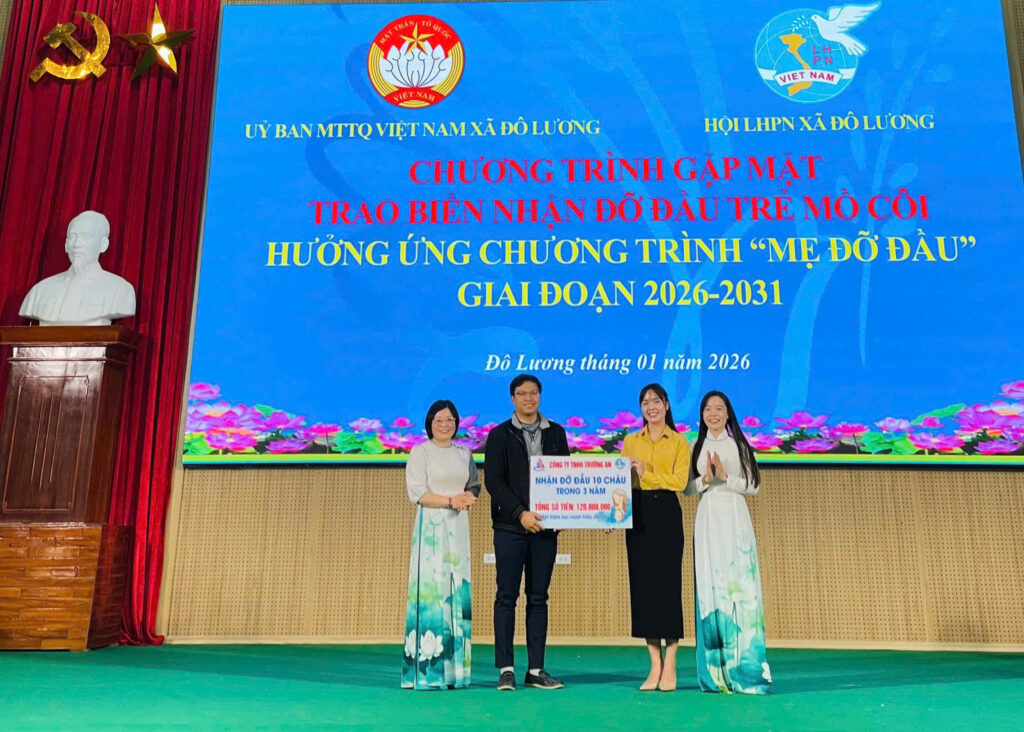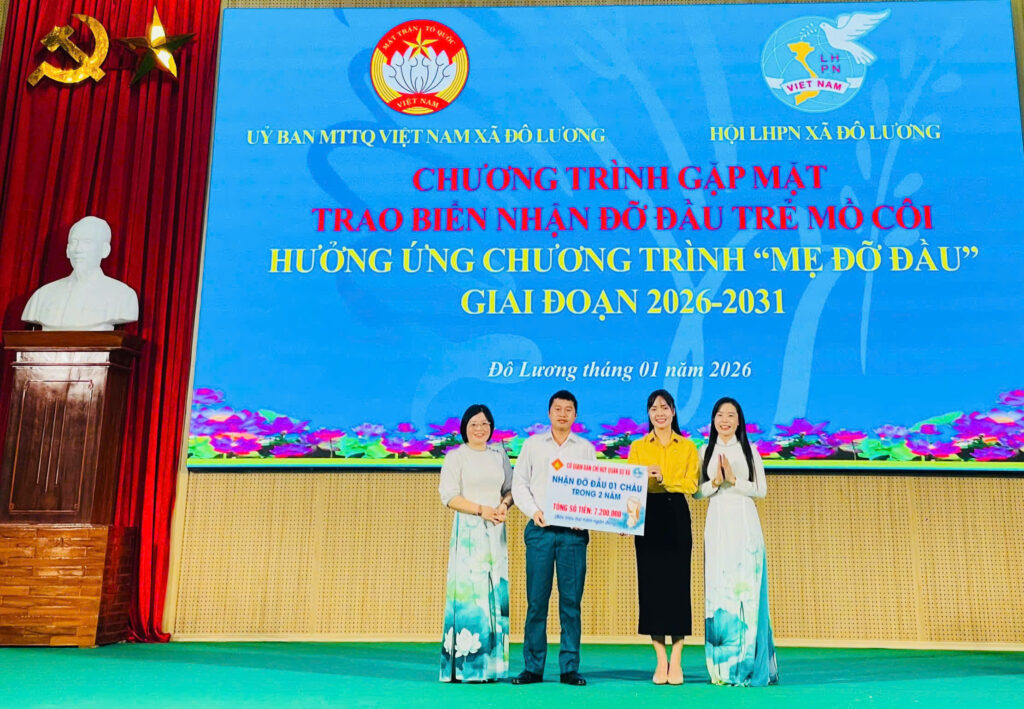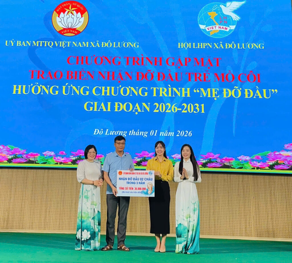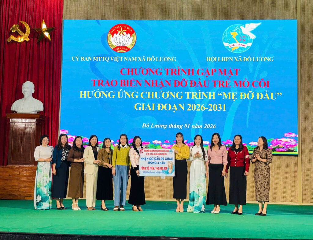 Sau 20 ngày kêu gọi và kết nối, tính đến ngày 15/1/2026, Hội LHPN xã Đô Lương đã kết nối, vận động nhận đỡ đầu cho 70 trẻ mồ côi, với tổng số tiền cam kết hỗ trợ 1 tỷ 10,8 triệu đồng, thời gian đỡ đầu bắt đầu từ tháng 1/2026.