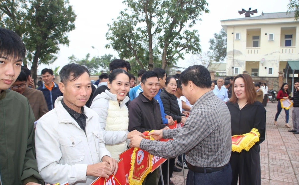 Tham dự có các đồng chí: Đoàn Văn Lợi – Phó bí thư Thường trực Đảng ủy; Trần Hoàng Anh – UVBTV, Phó Chủ tịch HĐND xã; Nguyễn Tất Tây UVBTV – Phó Chủ tịch UBND xã, Trưởng BTC giải bóng chuyền nam mừng Đảng quang vinh, Mừng xuân Bính Ngọ, Trần Thị Huyền Mơ – UVBTV, Chủ tịch Uỷ ban MTTQ Việt Nam xã; đại diện các ban, ngành, đoàn thể và đông đảo cán bộ, nhân dân trên địa bàn xã.