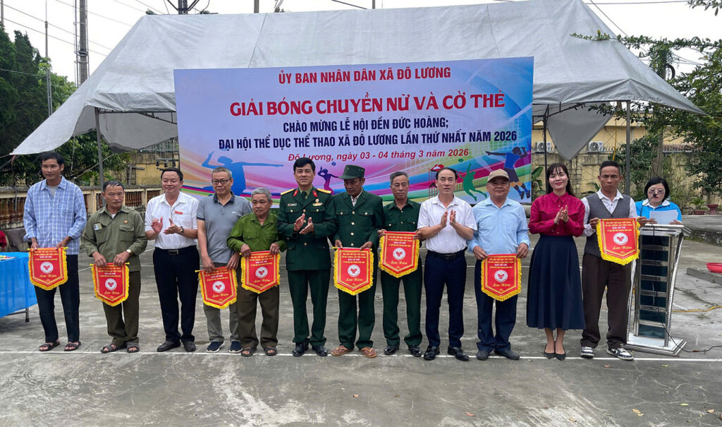 Thực hiện Kế hoạch số 51 của UBND xã Đô Lương về tổ chức Lễ hội Đền Đức Hoàng năm 2026, chiều ngày 3/3/2026, Hội Liên hiệp Phụ nữ và Hội Cựu chiến binh xã Đô Lương đã tổ chức Giải Bóng chuyền nữ và Cờ thẻ năm 2026.