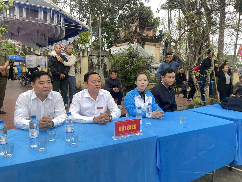 Tham dự có đồng chí Đoàn Văn Lợi – Phó Bí thư Thường trực Đảng ủy, đồng chí Nguyễn Tất Tây – UVBTV, Phó Chủ tịch UBND xã, Trưởng Ban Tổ Lễ hội Đền Đức Hoàng, đồng chí Bùi Đăng Quý – Chủ tịch Hội CCB xã và đồng chí Nguyễn Thị Lợi – Chủ tịch hội phụ nữ xã.