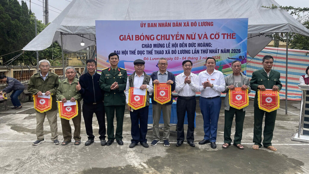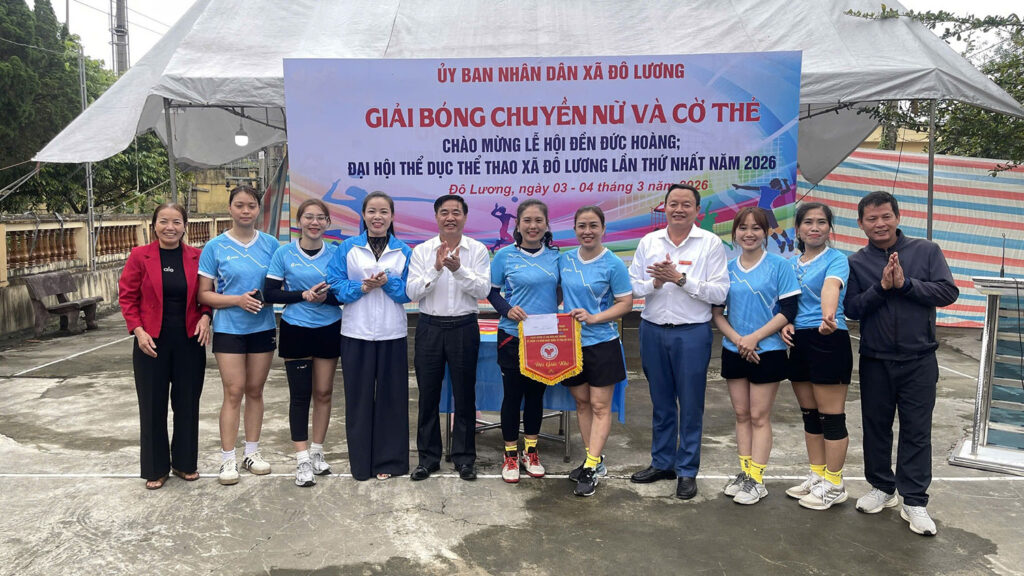 Trong 2 ngày thi đấu sôi nổi, chiều ngày 4/3 (Tức chiều ngày 16 tháng Giêng), đã diễn ra trận chung kết giải bóng chuyền nữ Lễ hội Đền Đức Hoàng năm 2026 giữa 2 đội bóng chuyền nữ cụm Đặng Sơn và cụm Yên Sơn xã Đô Lương, trận đấu đã thu hút được rất nhiều người hâm mộ và du khách thập phương đến xem và cổ vũ.