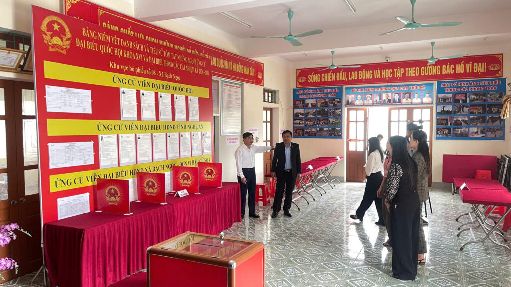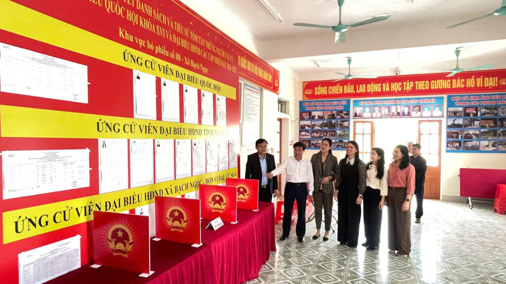 Tại xã Bạch Hà, Văn Hiến, Thuần Trung, Đô Lương, Lương Sơn và Bạch Ngọc đoàn đã trực tiếp vào kiểm tra công tác chuẩn bị tại các tổ bầu cử, qua kiểm tra một số điểm đang được triển khai gấp rút về trang trí khánh tiết và khu vực bỏ phiếu, một số đơn vị đã hoàn thành toàn bộ nội dung trang trí khánh tiết bên ngoài và trong khu vực bỏ phiếu…