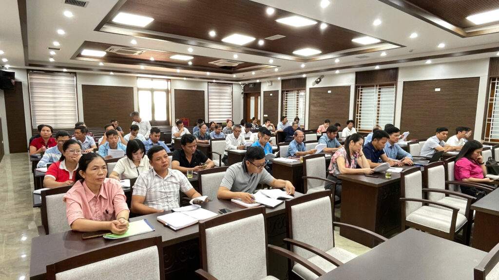 Tham dự hội nghị có các đồng chí đại diện lãnh đạo các ban, ngành, đoàn thể, đơn vị dịch vụ nông nghiệp và các bí thư – xóm trưởng của 49 xóm trên địa bàn.