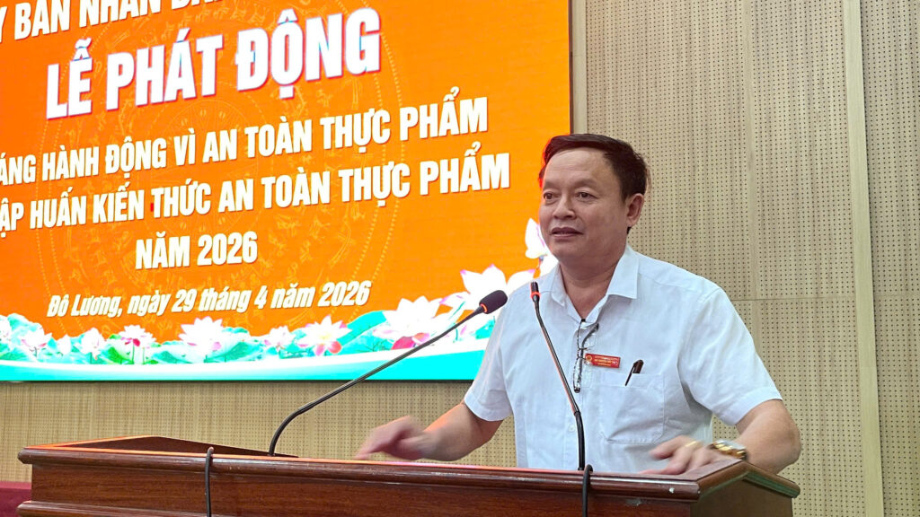 Sáng ngày 29/4, UBND xã Đô Lương tổ chức Lễ phát động “Tháng hành động vì an toàn thực phẩm” năm 2026 và tập huấn kiến thức “An toàn thực phẩm”. Đồng chí Nguyễn Tất Tây – Ủy viên Ban Thường vụ, Phó Chủ tịch UBND xã chủ trì hội nghị.