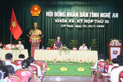 Trước đó, trong phiên họp buổi sáng, HĐND tỉnh tiếp tục nội dung chất vấn lãnh đạo Ngân hàng Nhà nước Chi nhánh Nghệ An việc triển khai thực hiện hỗ trợ lãi suất vay vốn tín dụng trên địa bàn tỉnh còn chậm. Theo báo cáo giải trình của ông Nguyễn Hữu Phàng, Giám đốc Ngân hàng Nhà nước tỉnh, tổng số dư nợ cho vay hỗ trợ lãi suất toàn địa bàn đến 30/6/2009 đạt 4.402 tỷ đồng, chiếm 17% tổng dư nợ cho vay toàn địa bàn. Nhìn chung, công tác cho vay hỗ trợ lãi suất trên địa bàn triển khai tích cực và đúng luật.