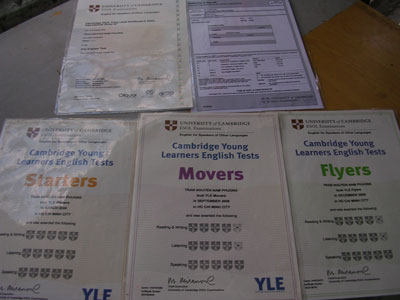 Bộ sưu tập những chứng chỉ tiếng Anh của cô bé Nam Phương
