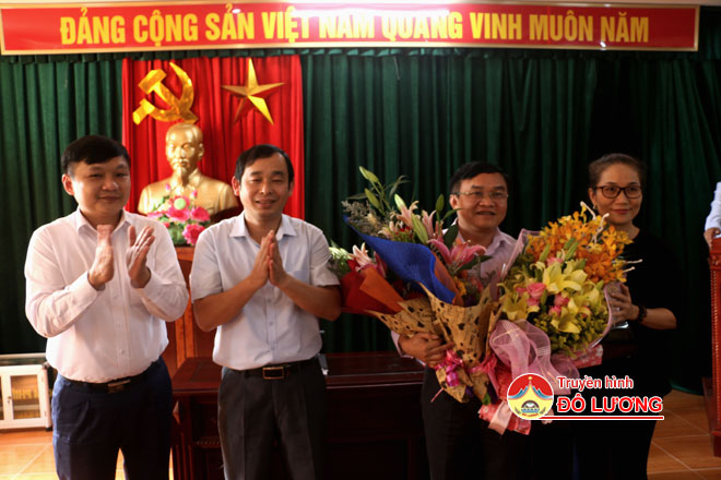 Đồng chí Lê Minh Giang – Phó bí thư – Chủ tịch HĐND huyện và các đồng chí Phó chủ tịch UBND huyện đã tặng hoa chúc mừng đồng chí Ngọc Kim Nam – Bí thư huyện ủy – Chủ tịch UBND huyện.