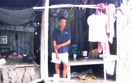 Ông Huỳnh Văn Trạch – 68 tuổi – bảo mỗi lần trời mưa, hai ông cháu cũng muốn đóng kín "cửa", ở bên trong cho an toàn. Nhưng ngó đi ngó lại, vách nhà được lợp bằng mấy tấm lá dừa ông cóp nhặt, chỉ đủ dựng được… 3 vách, còn lại phía mà ông gọi là "cửa" là cả khoảng không, nhìn ra chỉ thấy sông nước mênh mông, bãi cỏ lau sậy cao ngút ngàn.