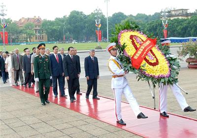 | Ngày 01/09/2009, đoàn đại biểu Ban Chấp hành Trung ương Đảng, Quốc hội, Chủ tịch nước, Chính phủ, Uỷ ban Trung ương Mặt trận Tổ quốc Việt Nam cùng đại diện các ban, ngành Trung ương và Hà Nội đã đến đặt vòng hoa và vào Lăng viếng Chủ tịch Hồ Chí Minh. Ảnh : Nhan Sáng – TTXVN |
