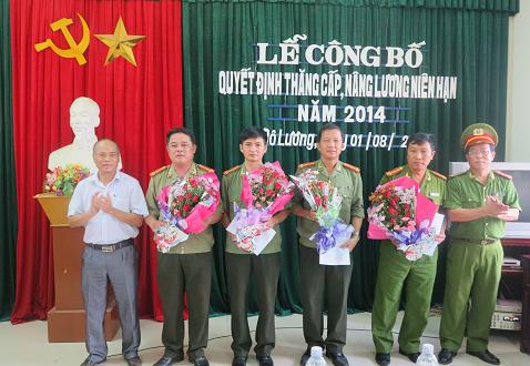 Sáng ngày 1/8/2014, Công an Đô Lương tổ chức lễ công bố quyết định thăng cấp, nâng lương niên hạn năm 2014. Tới dự có đ/c Trương Hồng Phúc – Bí thư huyện ủy – CT HĐND huyện.