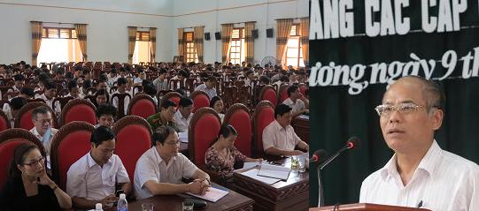 Phát biểu kết luận hội nghị, đ/c Trương Hồng Phúc – Bí thư huyện ủy yêu cầu các đ/c cấp ủy cơ sở nghiên cứu kỹ các văn bản hướng dẫn của Bộ Chính trị, BTC trung ương, Tỉnh ủy và các hướng dẫn của huyện ủy để phổ biến và tổ chức thực hiện đảm bảo quy trình quy định 1 cách nghiêm túc, đúng thời gian và đảm bảo chất lượng.