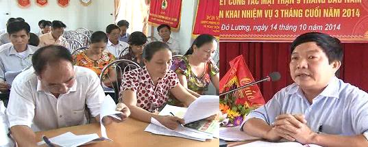 Chiều ngày 14/10, Ủy ban MTTQ huyện Đô Lương đã tổ chức hội nghị sơ kết công tác mặt trận 9 tháng đầu năm và triển khai phương hướng, nhiệm vụ 3 tháng cuối năm 2014. Tới dự có đ/c Nguyễn Minh Hạnh – PCT UBND huyện, đ/c Hoàng Hữu Hùng – chủ tịch UBMTTQ huyện chủ trì hội nghị.
