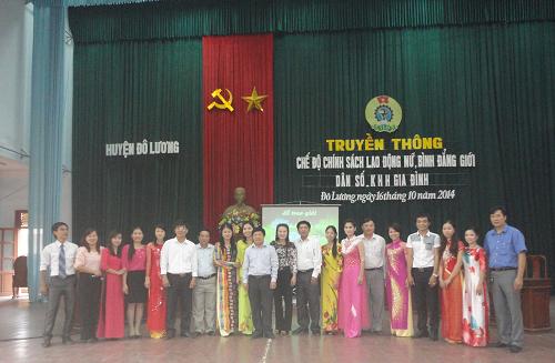 Sáng ngày 16/10, Liên đoàn Lao động Đô Lương phối hợp với Ban Nữ công Liên đoàn Lao động tỉnh Nghệ An tổ chức truyền thông về luật Bình đẳng giới, chính sách lao động nữ, dân số kế hoạch hóa gia đình cho công nhân, viên chức, lao động. Tới dự có Đ/c Nguyễn Minh Hạnh – PCT UBND huyện, chủ tịch công đoàn cơ sở và trên 200 nữ cán bộ nữ công , tổ trưởng nữ công công đoàn cơ sở.